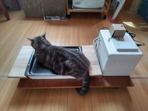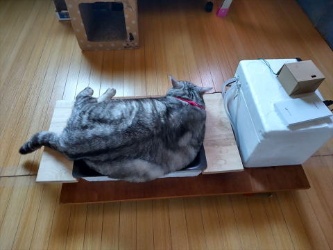 アメショウの姫用に、ヒエヒエパネル2号を作りました。前作は、廃熱がでてどこでも置くことができなかったのですが、