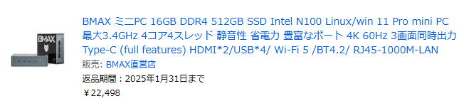 安く売っているミニPCを使うことにしました