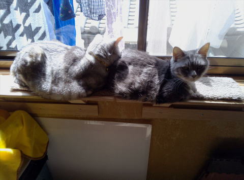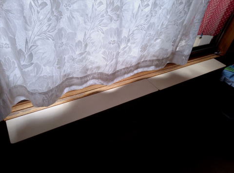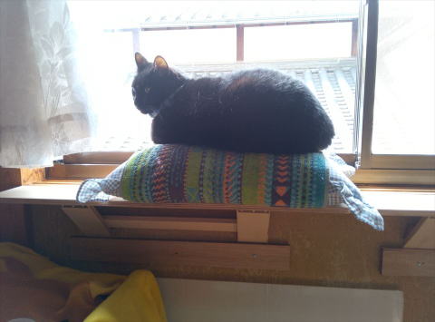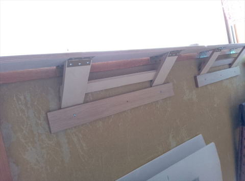 猫の日向ぼっこ用に窓前に棚を置いていたのですが、邪魔なので、窓枠に 簡単に可変できる棚を作ってみました