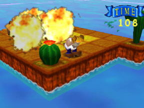 へんな大工のおじさんを操って、TNT火薬を並び変えたりして、最後は、火薬に火をつけて、島を破壊して、自分だけ助かるゲーム